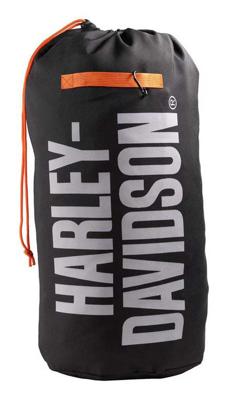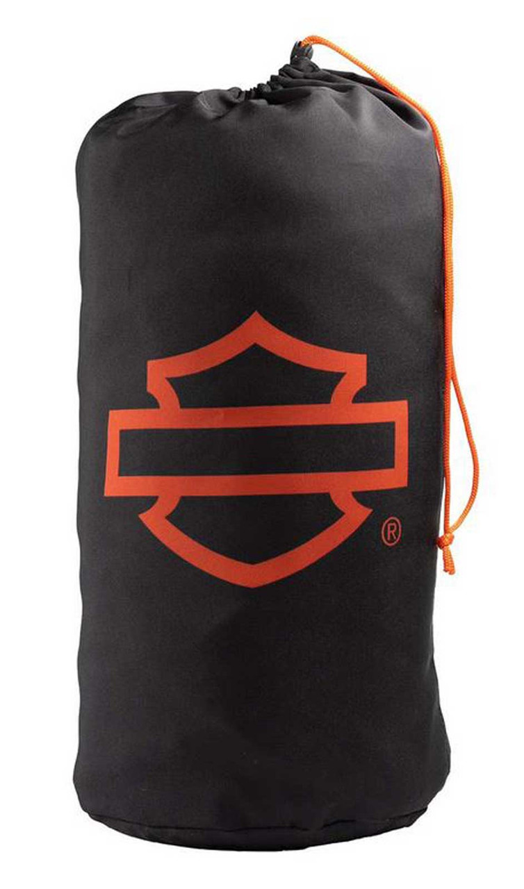 Features Harley-Davidson on the front and Open Bar & Shield on the back.