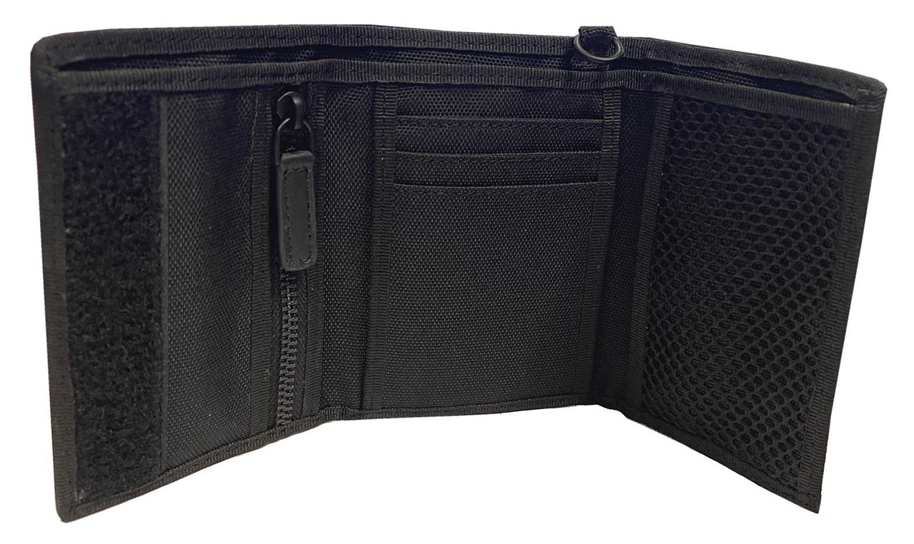 - Features 3 credit cards slots, mesh ID window, zippered coin pocket and cash slot