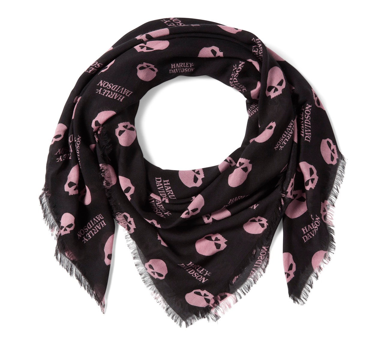 Wrap yourself in comfort while you honor our stylist’s creative legacy. Our Willie G™ Skull Shawl is made from 100% viscose for a soft and silky feel that drapes beautifully. It’s generously sized with fringe trim and custom allover graphics showcasing the iconic Willie G Skull. Know the history—though the Skull is one of his most popular creations, Willie G. Davidson also designed several motorcycles, including the 1971 FX Super Glide® model and the 1977 FXS Low Rider® model.