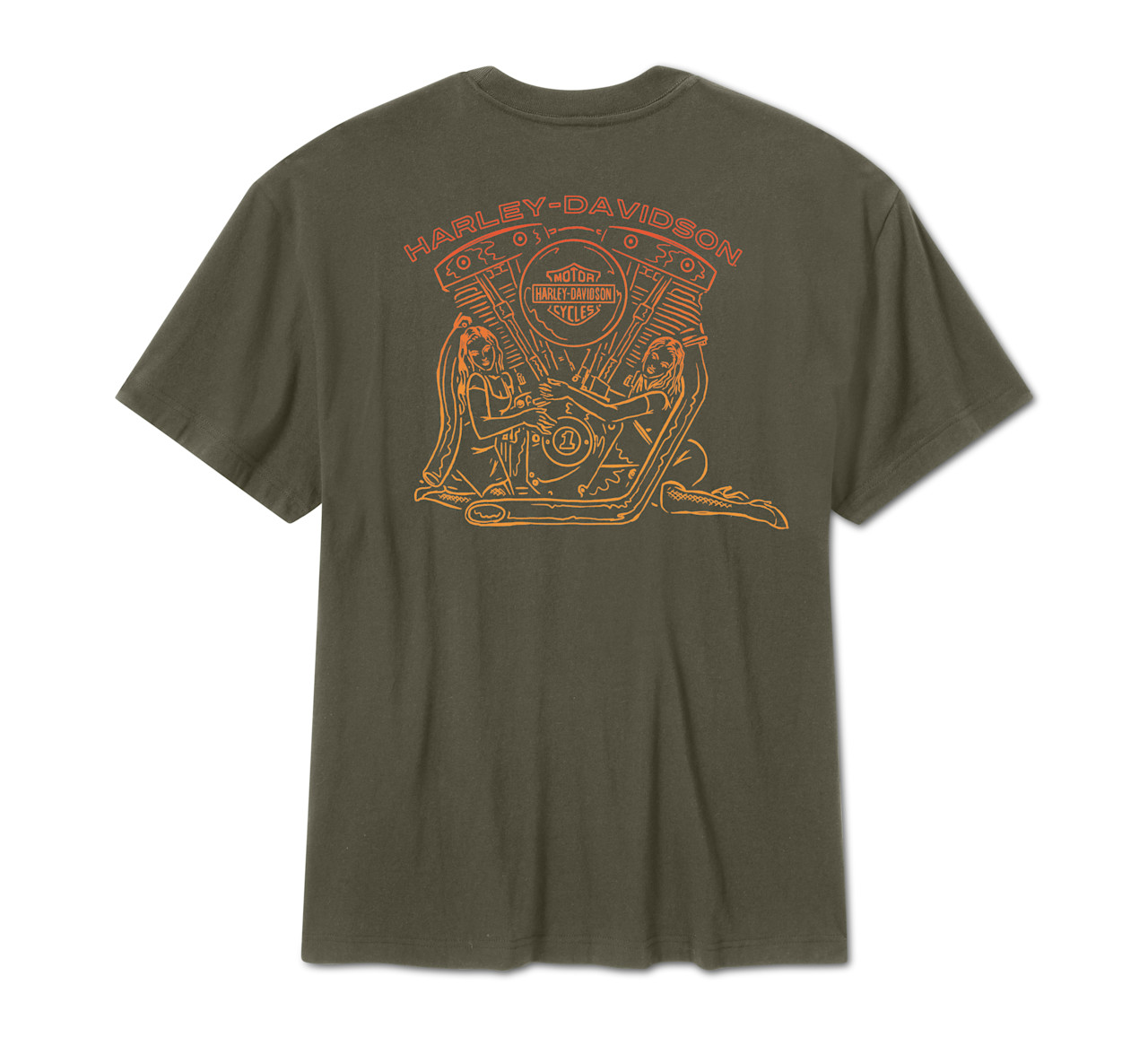 The power of two is a beautiful thing on our limited-edition H-D® Engine Twins Short Sleeve Tee. Made for longwearing comfort from breathable 100% cotton jersey, this men’s t-shirt delivers a relaxed fit and has a rib-knit neckline to help keep its shape. It’s vibrantly finished with engine-loving artwork in a gradient style for a truly unique look. Order yours before they’re gone.