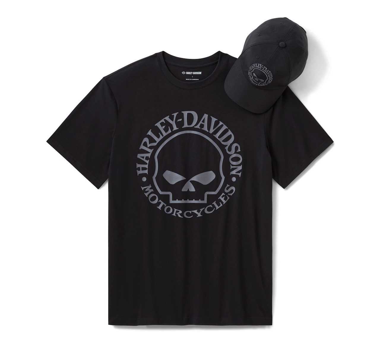 Style that honors a creative legacy is here on our Willie G ™ Skull Hat & Tee Gift Set. The t-shirt is crafted for comfort from a cotton/polyester jersey while the hat is made from durable yet lightweight nylon Taslan. Both are boldly finished with the Willie G Skull. Know the history—though the Skull is one of his most popular creations, Willie G. Davidson also designed several motorcycles, including the 1971 FX Super Glide® model and the 1977 FXS Low Rider® model.