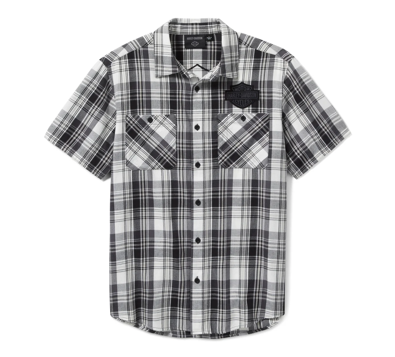 Timeless moto style is a no-brainer in our Bar & Shield Plaid Shirt. It’s built for lightweight, longwearing comfort from breathable yet durable all-cotton twill that’s washed for softness. This short sleeve men’s button down features a pen stall and a hidden snap-down collar that won’t flap around under riding gear. It’s finished with a patch of our most iconic graphic perched on front and parked on back.
