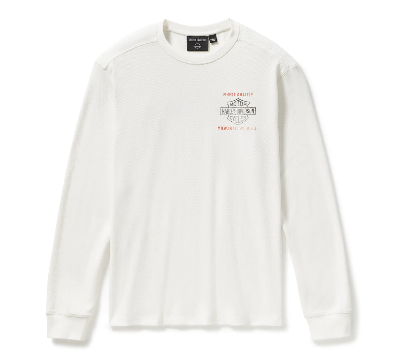 Nostalgic, workwear-inspired style is all yours in our Parts & Service Long Sleeve Thermal. It’s crafted for lasting comfort from a heavyweight cotton/polyester birdseye mesh that’s washed for a well-worn look and feel. The distressed custom graphics inspired by our archives give a nod to the pros who keep us rolling on every ride.