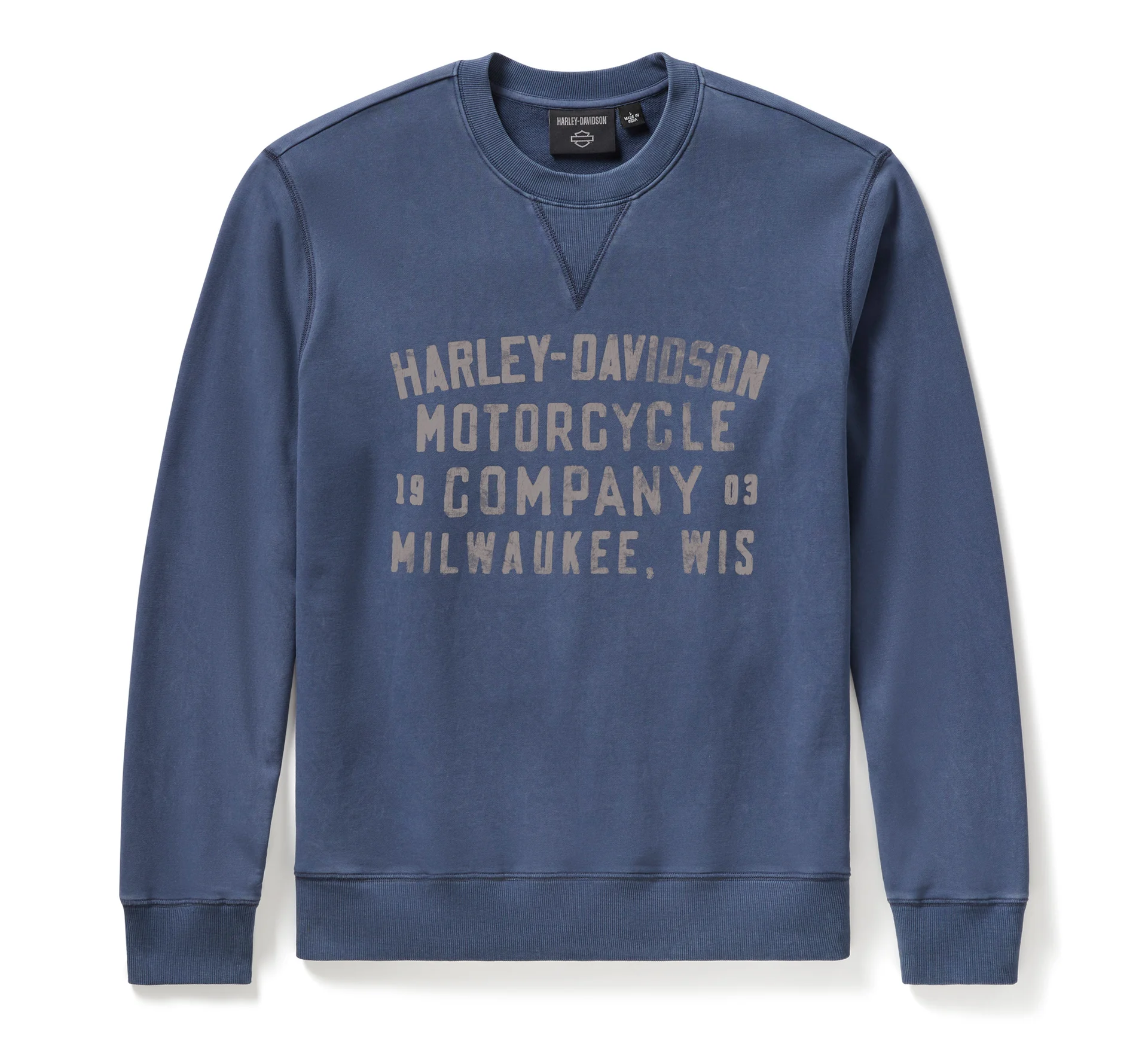 Vintage-loving style meets longwearing comfort in the H-D® Washed Crewneck. It’s crafted from cotton/polyester French terry for breathability in a relaxed fit. Features a V-stitch neckline plus a pigment wash and distressed graphics to add its well-worn vibe. The artwork on this men’s crewneck sweatshirt is inspired by the lettering that appeared on our 1930s racing apparel.