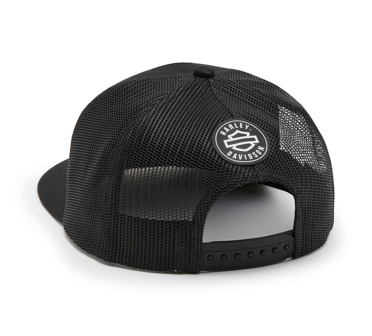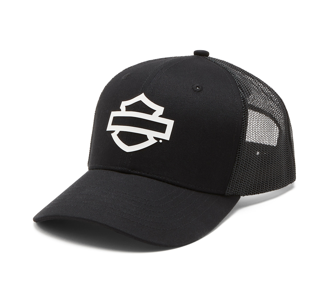 Go-with-anything style goes the distance in our Logo Switchback Trucker Cap. This men’s hat is built with an adjustable snap back for your ideal fit. True to its trucker silhouette, it features a mesh back panel for air-loving ventilation that keeps you cool. Finished with our open Bar & Shield on front and our branded patch on back.
