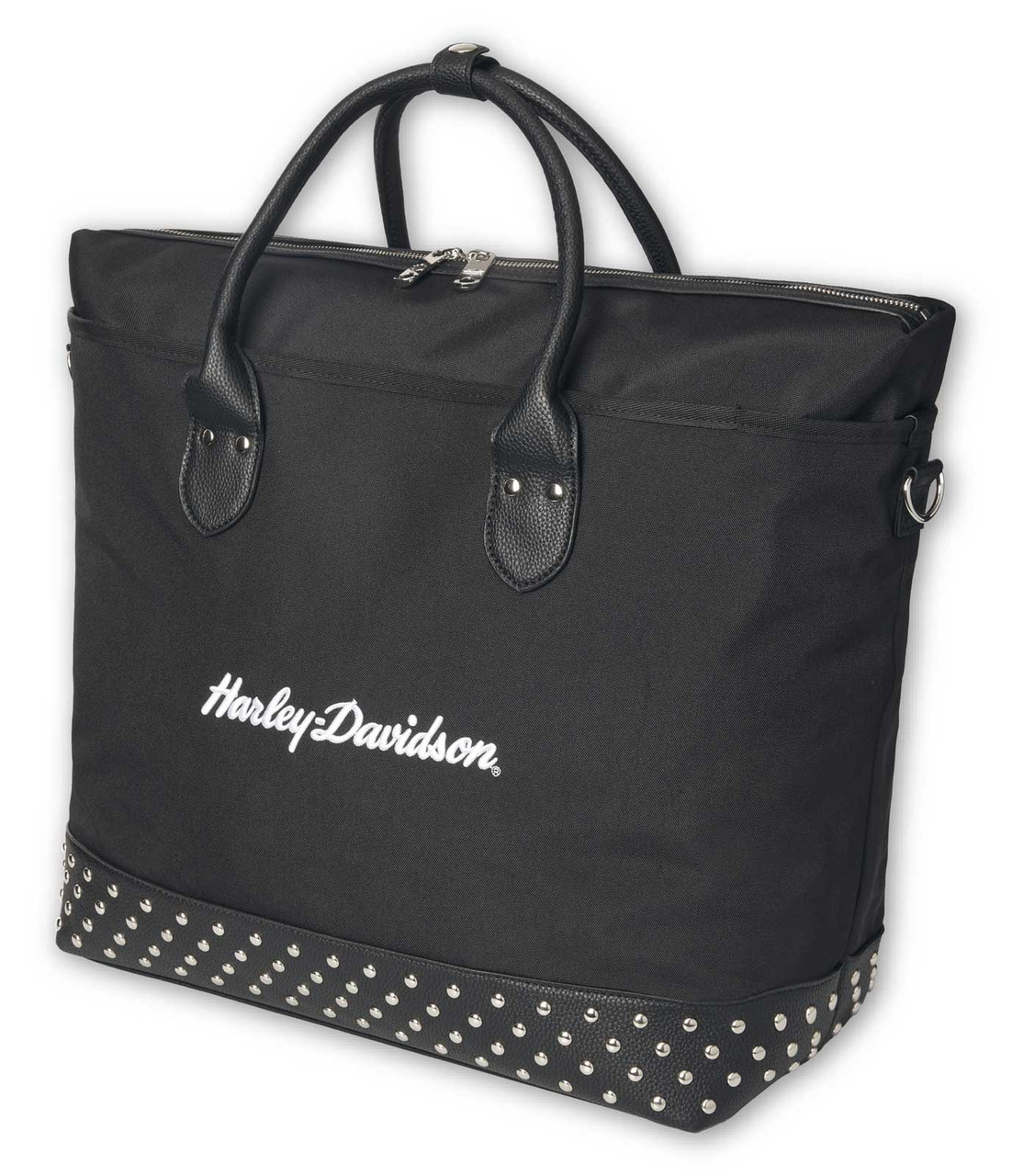 Harley-Davidson® Women's Studded Duffel Bag. Durable exterior with stylish silver studs and leather trim.