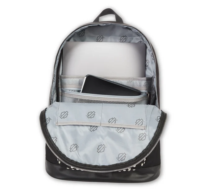 Durable Construction: Crafted from tough polyester with premium leather trim and striking silver studs for a bold look.